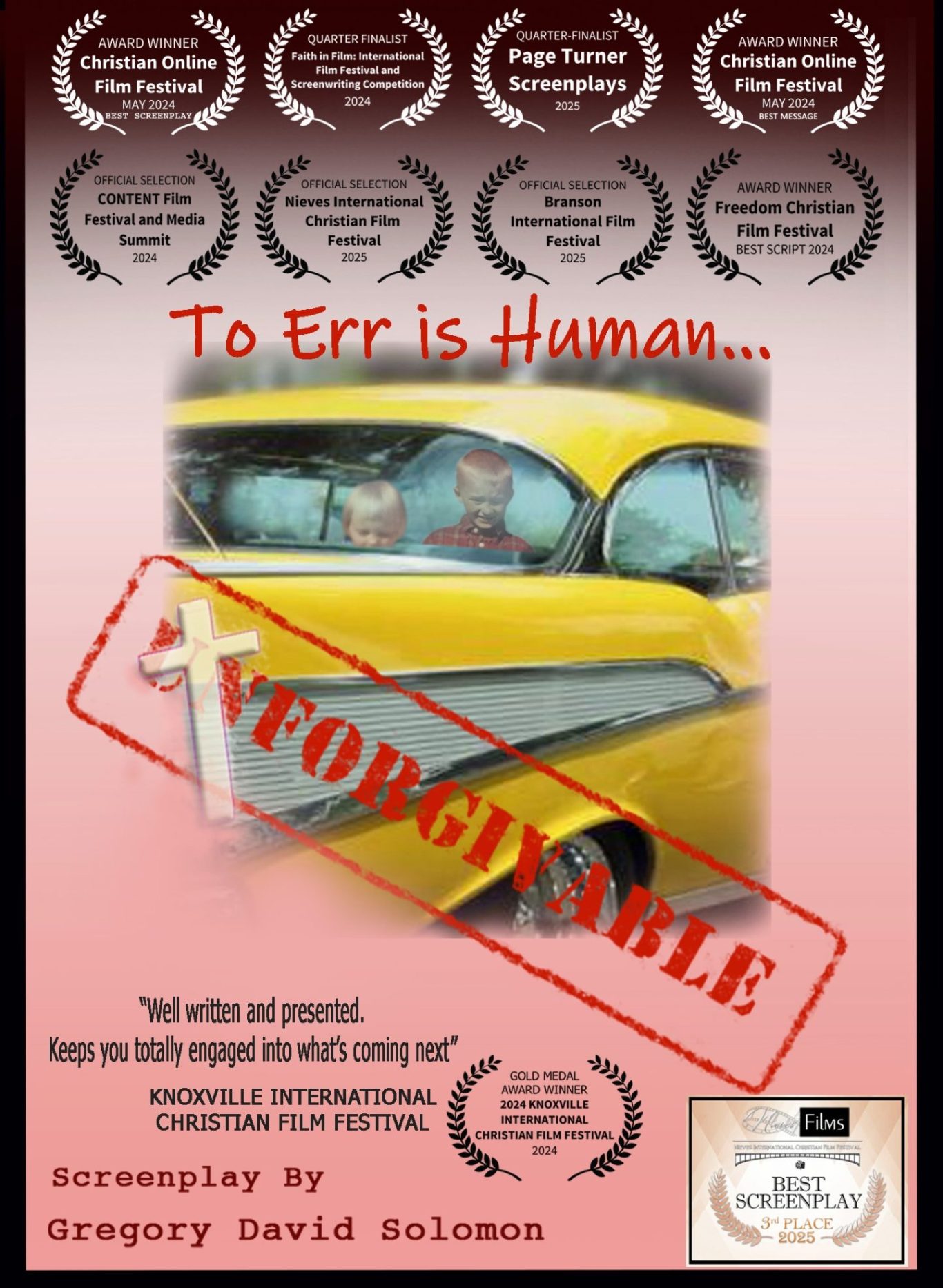 I have recently retired from doing makeup and have devoted the rest of my career to writing Faith-Based Screenplays. “Unforgivable” is based on a true story and is my 7th and most recent full-length Screenplay. So far it has won 3 - 1st Place awards (Best Screenplay, Best Message, Best Script), 2 Quarter Finalist positions, 1 Selection, and 3 Nominations.